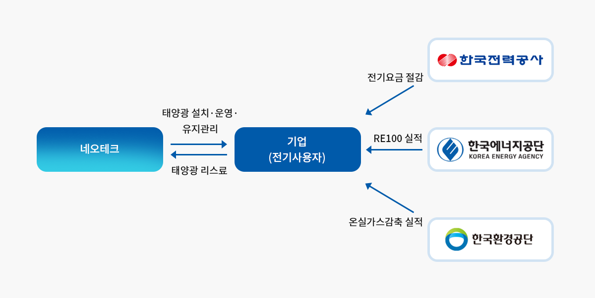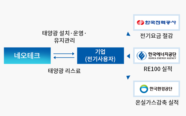 기업 소유의 공장 지붕이나 주차장 등 유휴 부지에 네오테크가 태양광 설비 투자와 운영·관리를 전담하며,